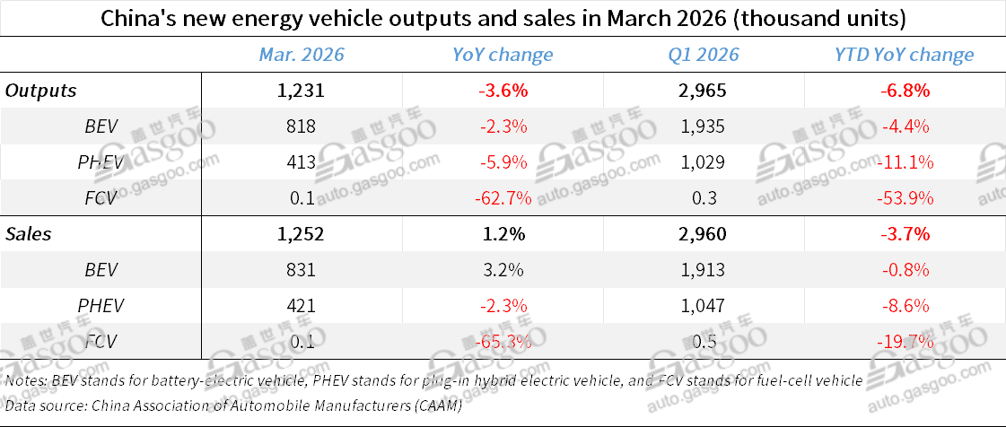 For the first quarter, domestic NEV sales totaled 2.006 million units, down 23.8%. Passenger NEVs fell 26.7% to 1.822 million units, while NEV commercial vehicles rose 23.6% to 184,000 units.