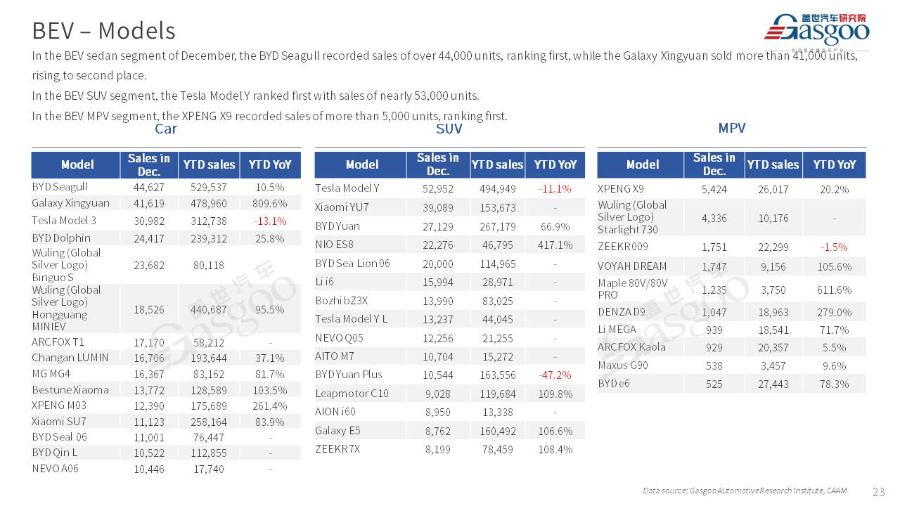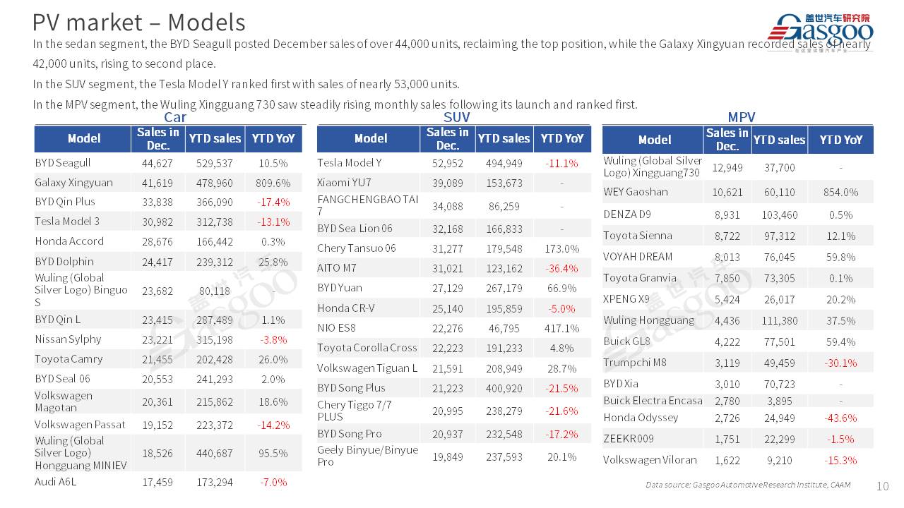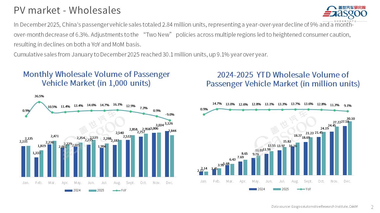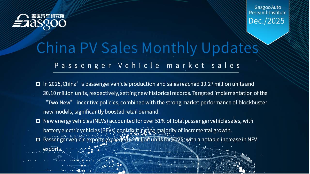 This is overview of China's passenger vehicle sales, production, and exports for December 2025.