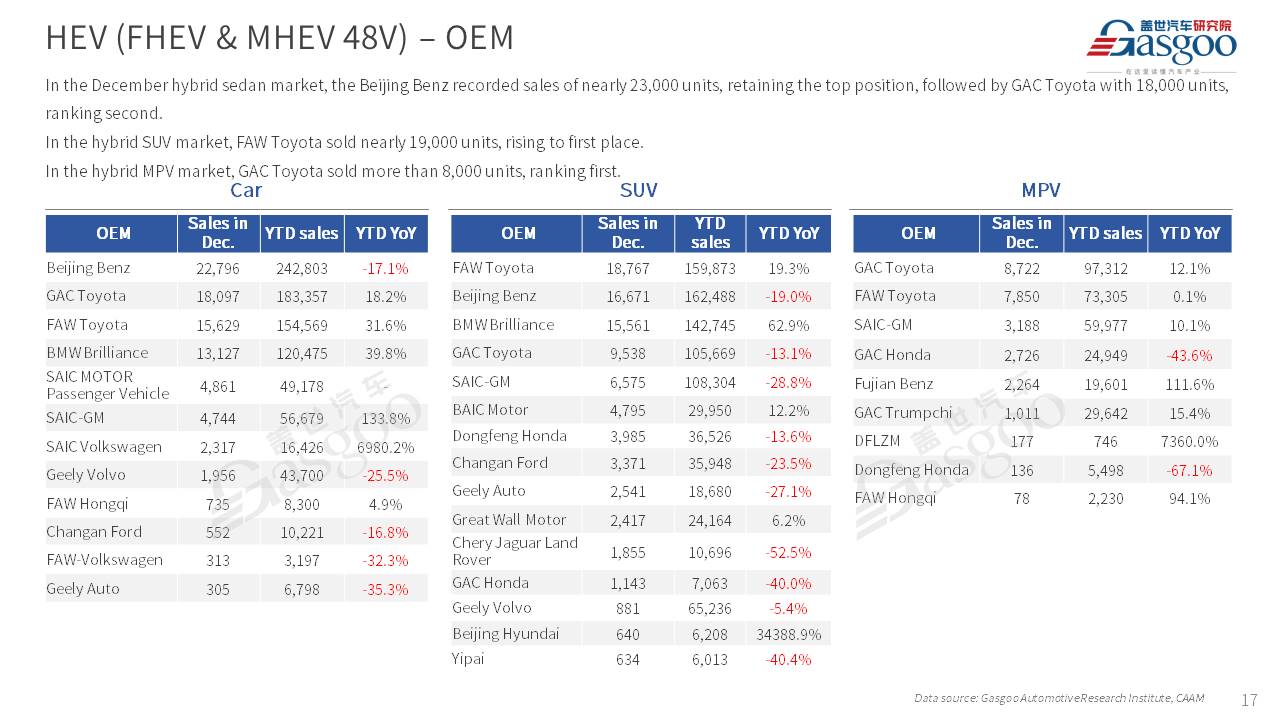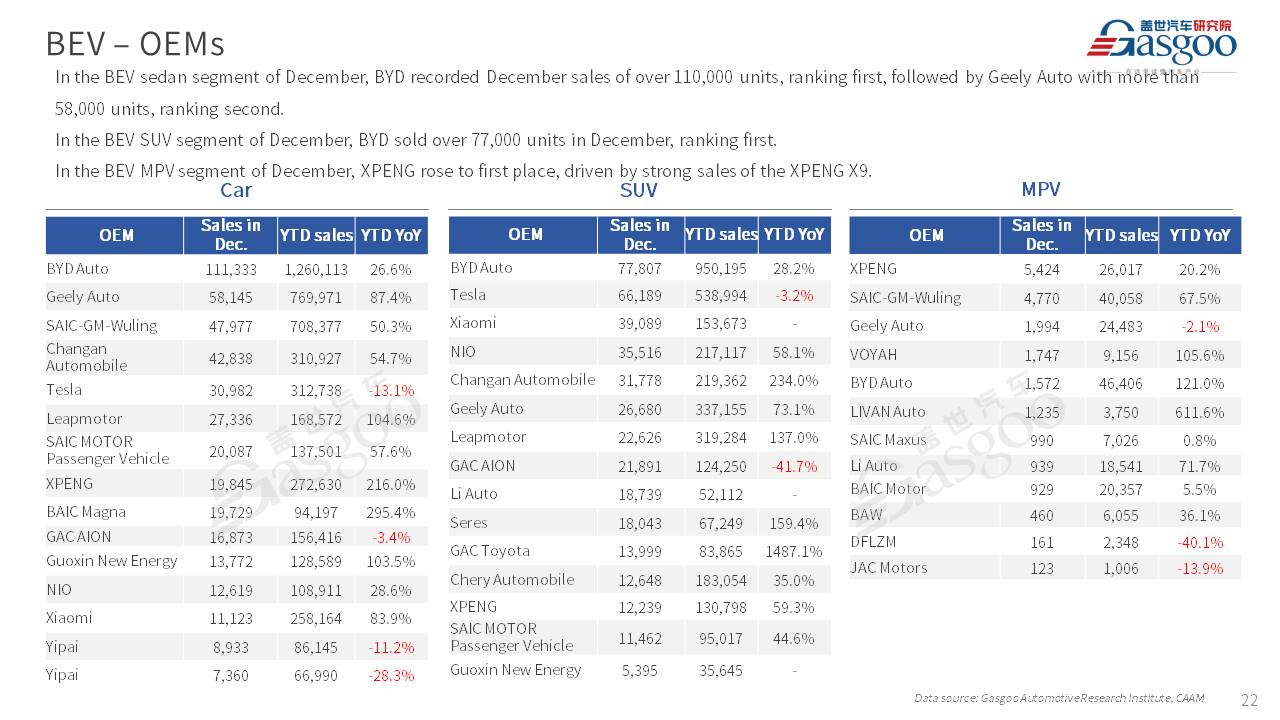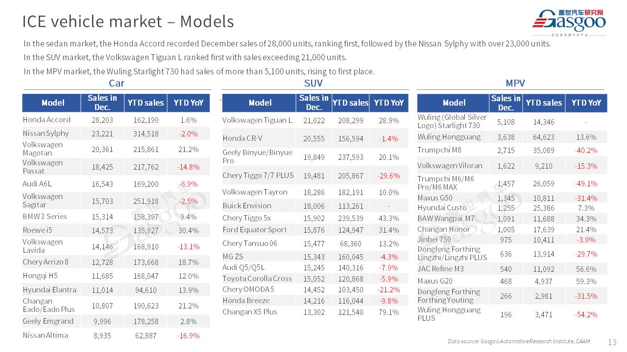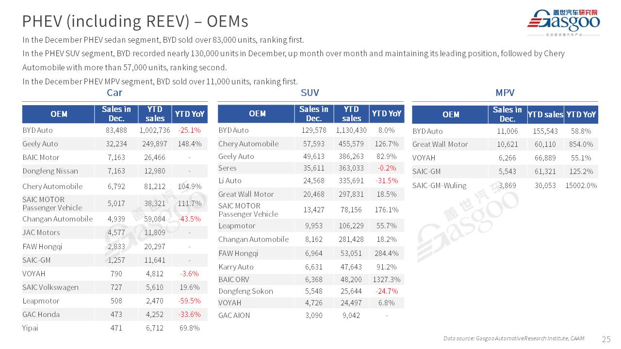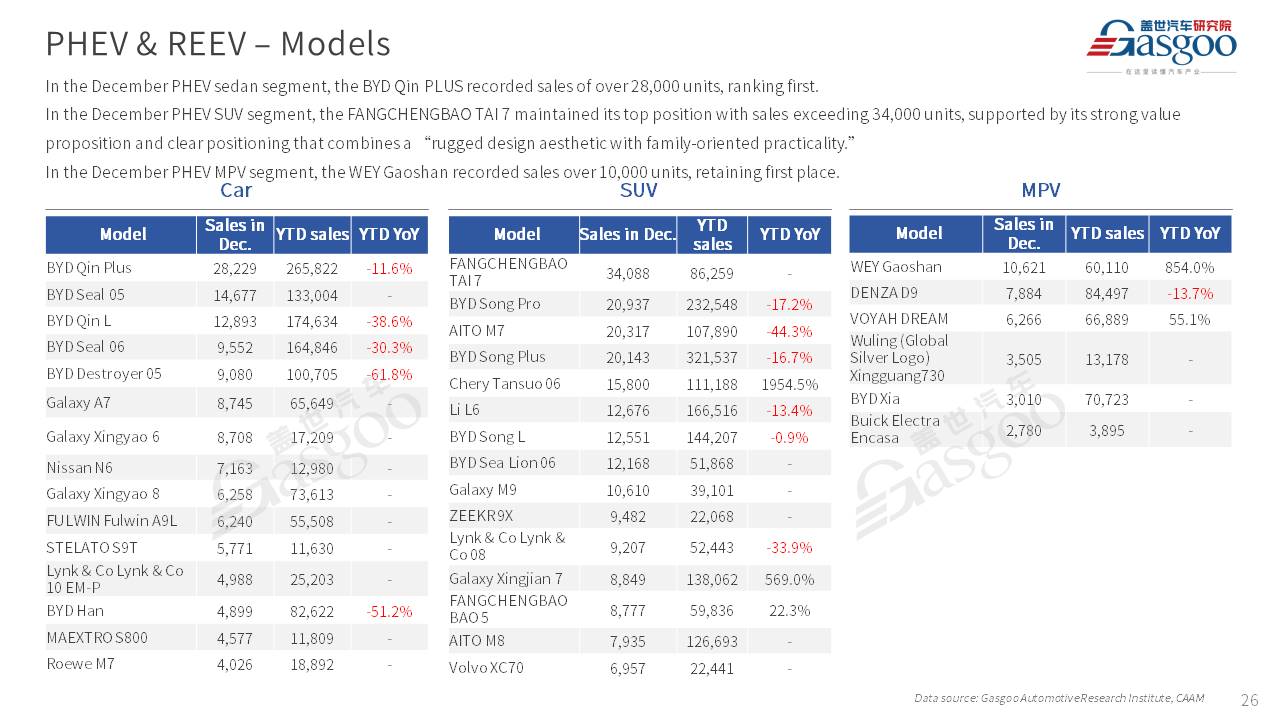 This is overview of China's passenger vehicle sales, production, and exports for December 2025.