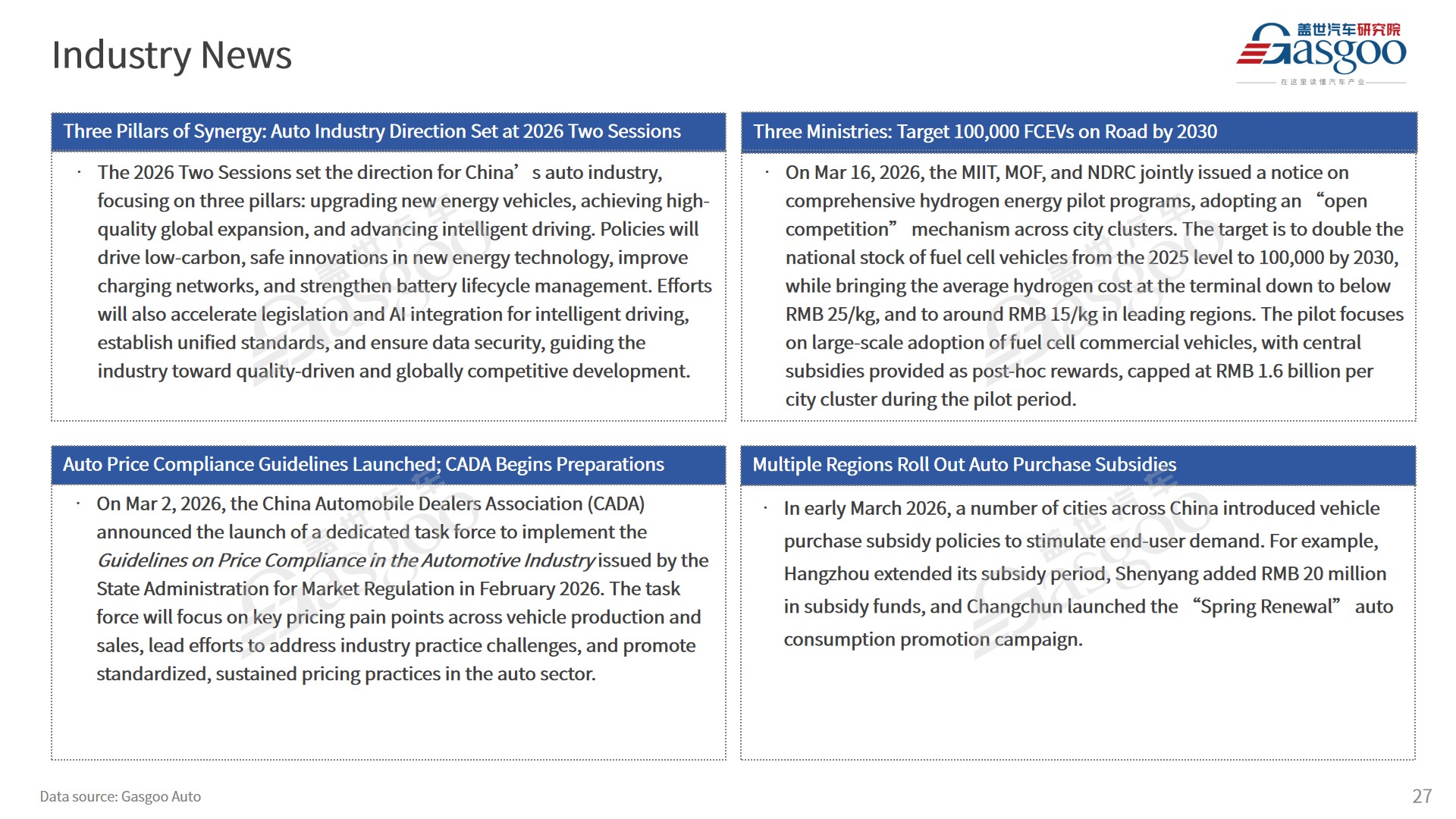 Gasgoo not only offers timely news and profound insight about China auto industry, but also help with business connection and expansion for suppliers and purchasers via multiple channels and methods. Buyer service: buyer-support@gasgoo.com Seller Service: seller-support@gasgoo.com
