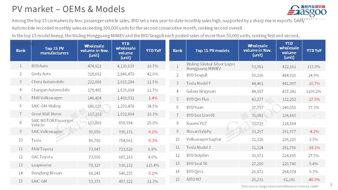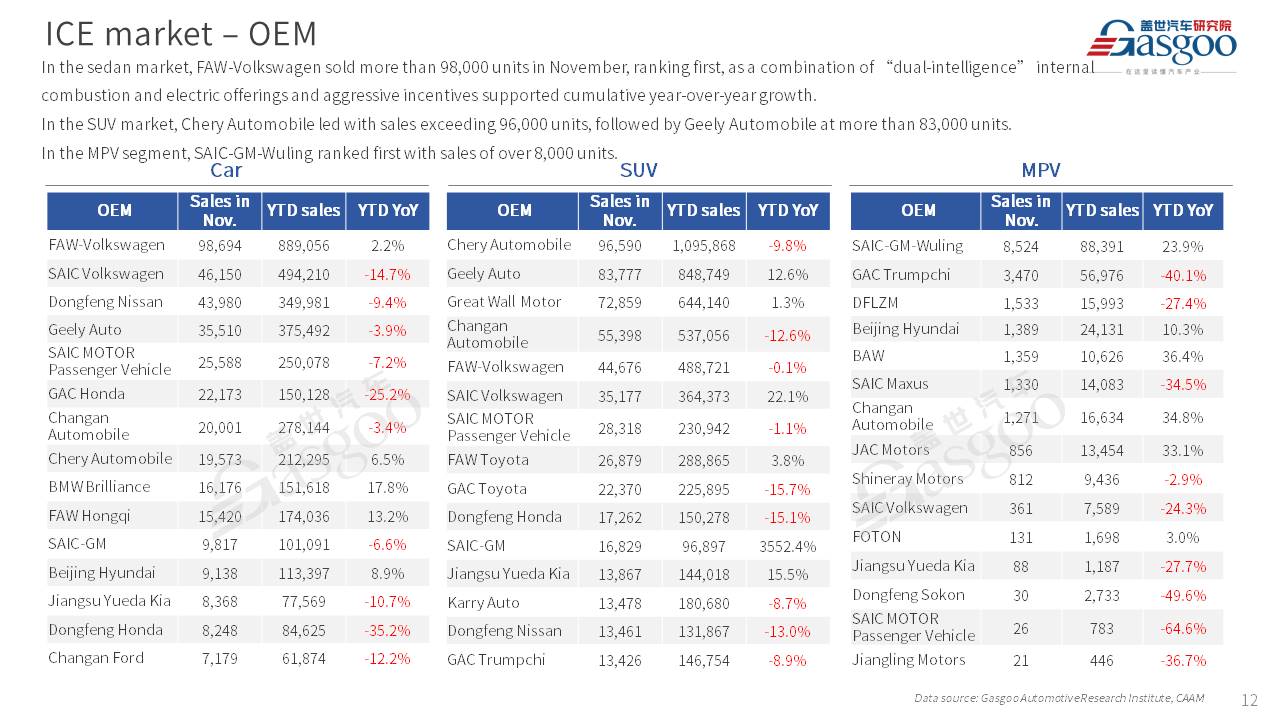 【November 2025】China Passenger Vehicle Sales Analysis