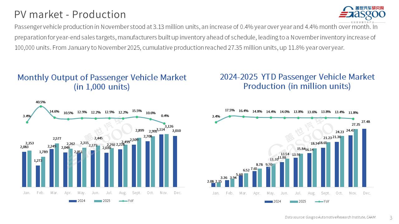 This is overview of China passenger vehicle sales, production, and exports for November 2025.