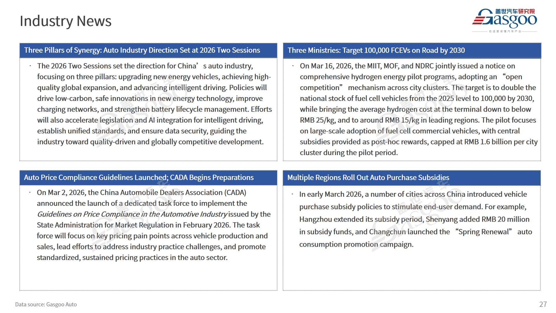 Gasgoo not only offers timely news and profound insight about China auto industry, but also help with business connection and expansion for suppliers and purchasers via multiple channels and methods. Buyer service: buyer-support@gasgoo.com Seller Service: seller-support@gasgoo.com